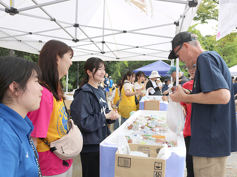 会場設営、コース誘導や模擬店、参加者へのパンやドリンク、タオルの配布など、早朝から約150人のボランティアの皆さまにご協力いただきました。