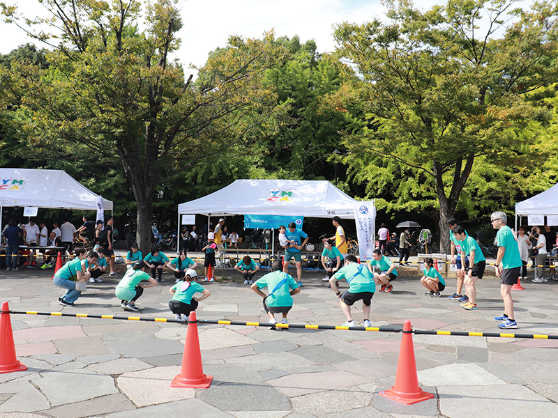 早朝から小雨のなか、会場設営、参加者へのパンやドリンクの配布、チーム受付など、実行委員として参加したYMCA社会体育・保育専門学校の学生を始め、ボランティアの皆さま、スタッフあわせて約230人が久しぶりの開催、力をあわせて盛り上げました。